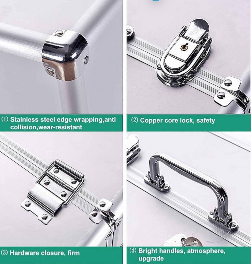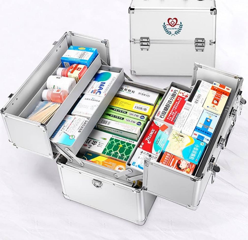 Medicine Storage Box with Portable Handle, Lockable First Aid Kit, First Aid Box Security Lock, 3 Tier Medication Lock Box Design/Precription (B-Silver)