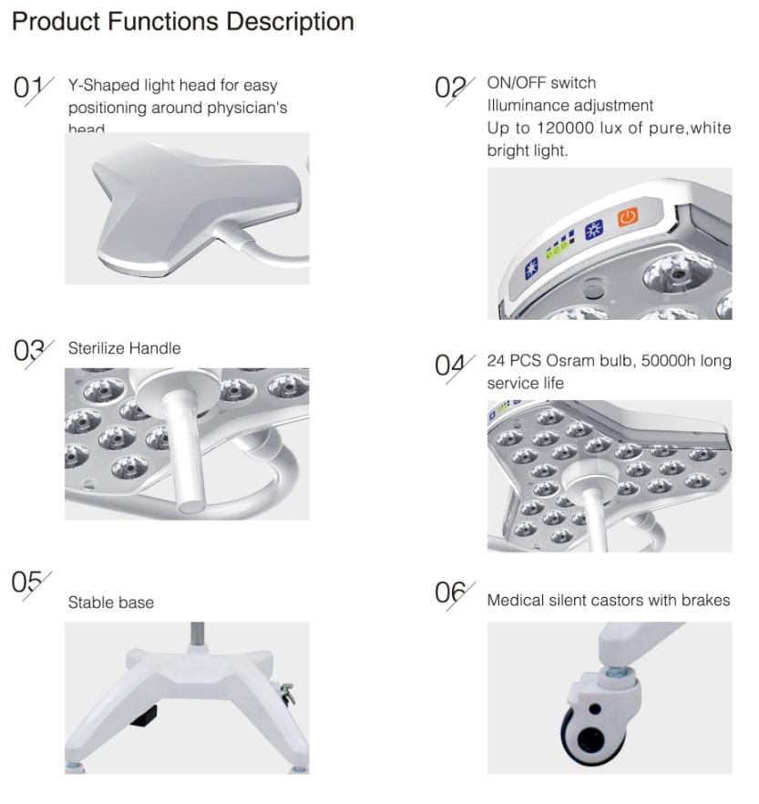 Mobile OT LIGHT – Features includes Shadow less Light, Body is made of high quality fire resistant polymer. Single non winged round shape lamp head for easy maintenance and better sealing against dust and fumigation.
